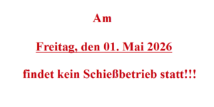 Am Freitag, den 1. Mai 2026 findet kein Schießbetrieb statt